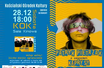Patryk Pietrzak - to multiinstrumentalista, teksiarz, aktor filmowy i teatralny. Debiutował solowym albumem ''Ok Boomer'', z którego singiel ,,Maryś'' otrzymał pierwsze miejsce ''LP'' Radia 357. W ostatnich miesiącach ukazały się trzy single: „Więcej”, „Maczugi” oraz „Chyba”, zwiastujące drugi album Patryka „Kaprysy i Ruminacje”. Artysta wystąpił w towarzystwie zespołu Kaprysy.