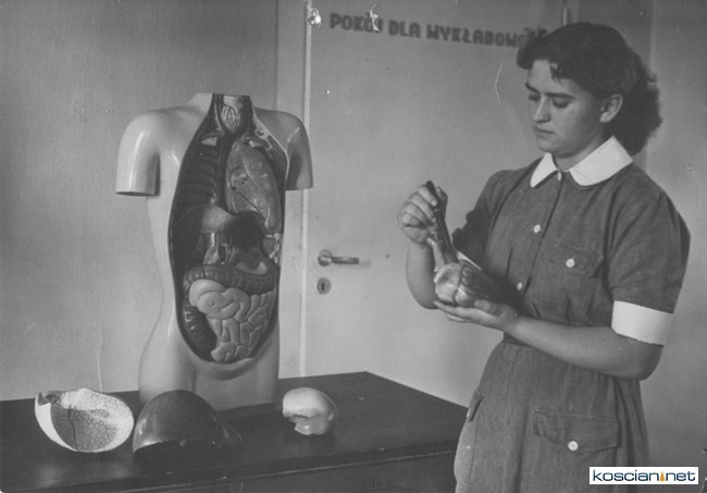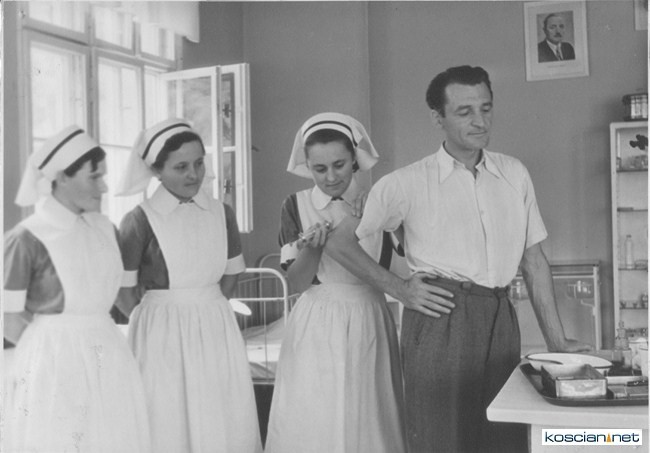 To wyjątkowe miejsce, i to nie tylko ze względu na urodę. W budynku, w którym przez ponad pół wieku uczono jak pomagać cierpiącym dr Oskar Bielawski jesienią 1929 roku dokonał spektakularnego otwarcia izolatek. Dziś trudno w to uwierzyć, ale w szpitalu jaki zastał obejmując stanowisko pacjenci uważani za agresywnych miesiącami, a czasem i latami żyli nago, na słomie i słomą się okrywając. Jedyny kontakt z innym człowiekiem mieli, gdy przez mały otwór wsuwano im miskę z jedzeniem i raz dziennie z ziemi zbierano łopatą na długim kiju ekskrementy. Bielawski przeniósł ich do pokoi z łóżkami, pościelą i firankami, a pracowników szpitala, którzy do tej pory pilnowali pacjentów, zaczął uczyć – jak im pomagać. Tak zaczęła się długa droga zmian, które kościański szpital uczyniły jednym z najnowocześniejszych w Europie. Do czasów niemieckiej okupacji i tuż po niej w budynku gdzie były izolatki mieścił się oddział im. Bechterewa. I ten budynek właśnie dyrektor przeznaczył na szkołę. We wrześniu 1953 roku zaczęła tam działać jedna z pierwszych w Polsce szkół pielęgniarstwa psychiatrycznego. Uczono tam nie tylko jak pomagać stosując medykamenty, ale też szacunku dla chorych.