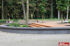Rzeczywiście późną wiosną coś się zaczęło dziać. Prace zakończono w tym tygodniu. Na klombie, obok roślin, pojawiła się drewniana konstrukcja