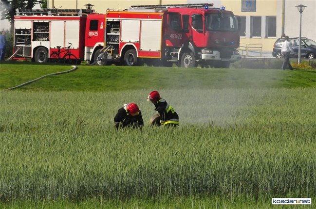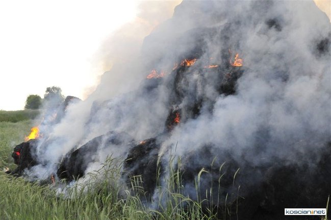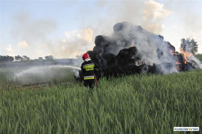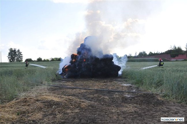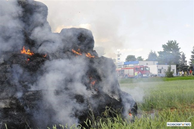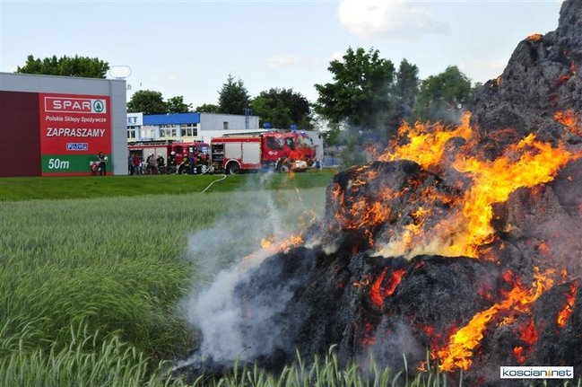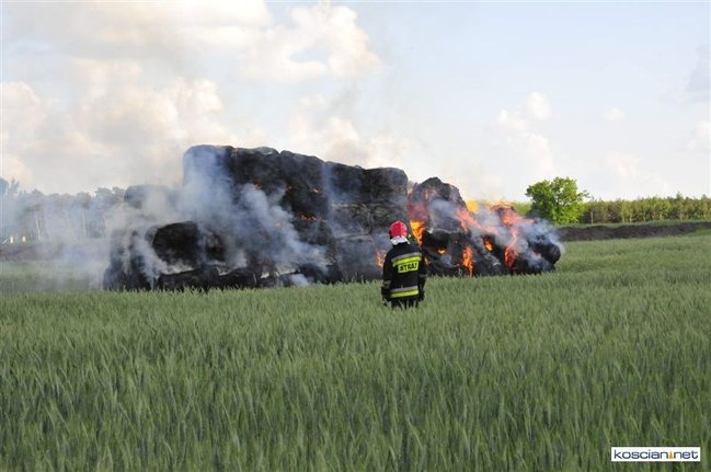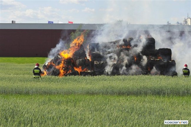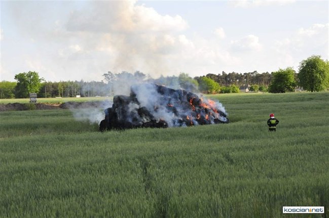 Płonęło kilka balotów słomy, które ktoś prawdopodobnie podpalił. Na szczęście stóg otoczony zielonym zbożem, oddalony był od zabudowań. Z żywiołem walczyły dwa zastępy strażaków zawodowców z Kościana i trzy zastępy ochotników z Racotu, Gryżyny i Kościana. Akcja zakończyła się po godz. 21.