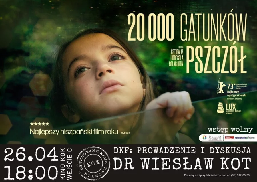 Kwietniowe spotkanie Dyskusyjnego Klubu Filmowego Wiesława Kota spędzimy z kinem hiszpańskim. W piątek, 26 kwietnia, o godzinie 18:00, wyświetlony zostanie film "20 000 gatunków pszczół", który nagrodzono między innymi trzema Nagrodami Goya. Jak zawsze przed filmem Wiesław Kot wygłosi prelekcję, a po seansie odbędzie się dyskusja. Wstęp wolny.