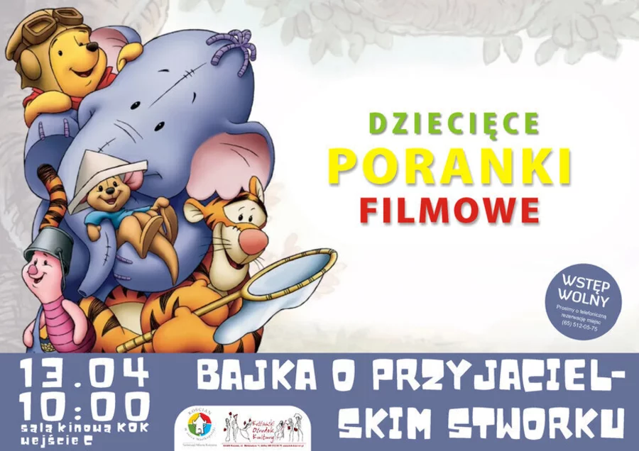 13 kwietnia, w cyklu „Dziecięcy poranek filmowy” o godzinie 10:00, w Sali kinowej KOK wyświetlony zostanie film „BAJKA O PRZYJACIELSKIM STWORKU”. Wstęp wolny. Możliwość rezerwacji miejsc pod numerem: 65 512 05 75.