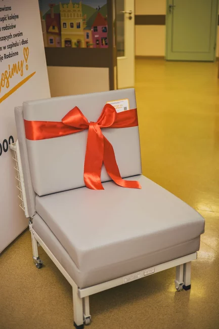 Łóżka od Fundacji Ronalda McDonalda w ciągu dnia służą jako fotel idealny do przytulania, wspólnego oglądania bajek i czytania książeczek. Wieczorem wystarczy jeden ruch, by zamienić je w wygodne miejsce do spania.