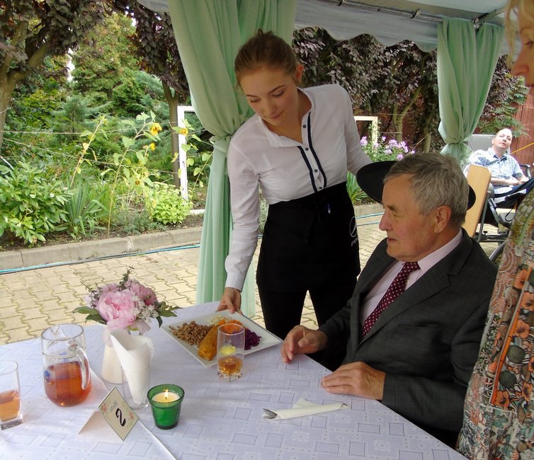 - Nasi mieszkańcy bardzo marzyli o wyjściu razem do restauracji – mówi Katarzyna Michalewicz – dyrektor DPS w Jarogniewicach. - Ze względu na brak możliwości technicznych, konieczność przewiezienia około 30 osób na wózkach inwalidzkich, postanowiliśmy zorganizować restauracje na terenie naszego Domu. Udało się to 10 sierpnia. Było wszystko: eleganckie stroje, świece, kwiaty, muzyka oraz pyszne jedzenie.