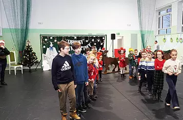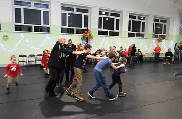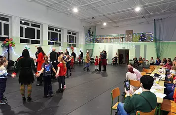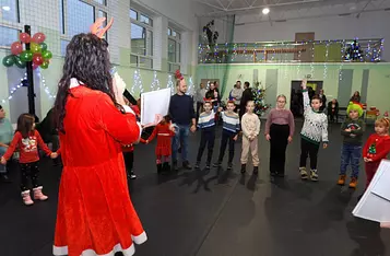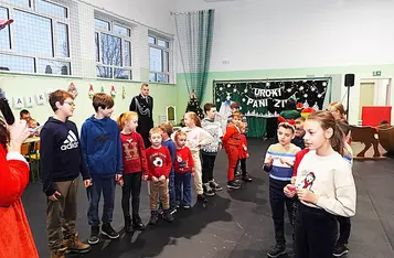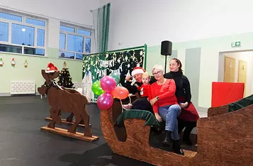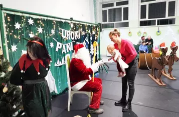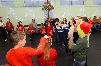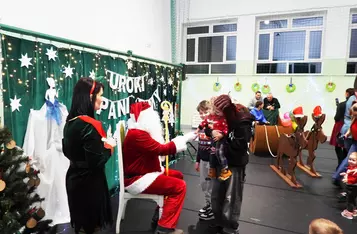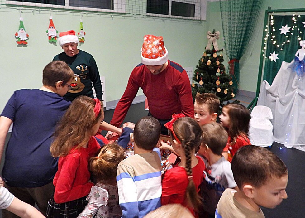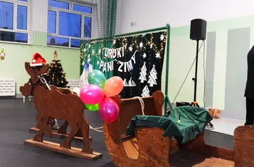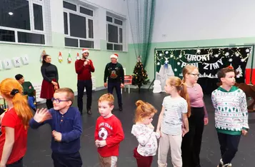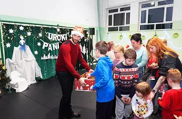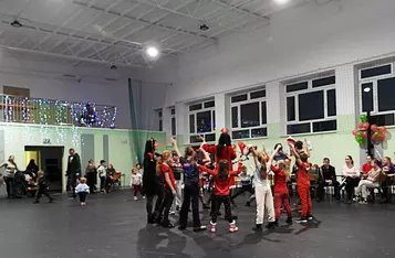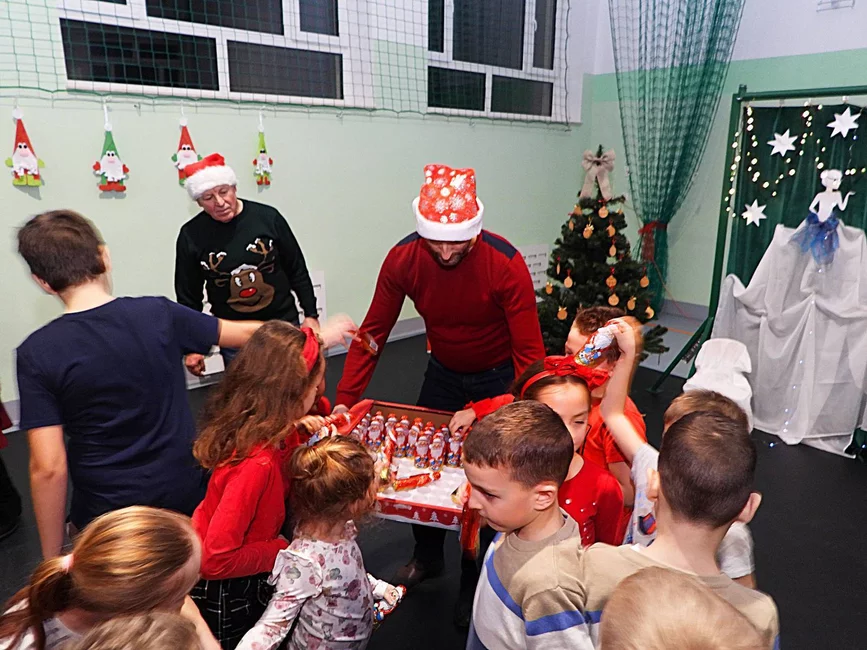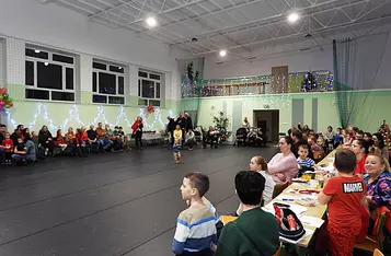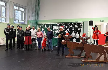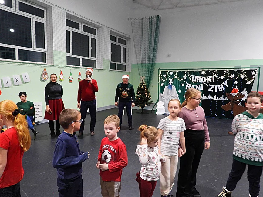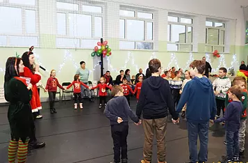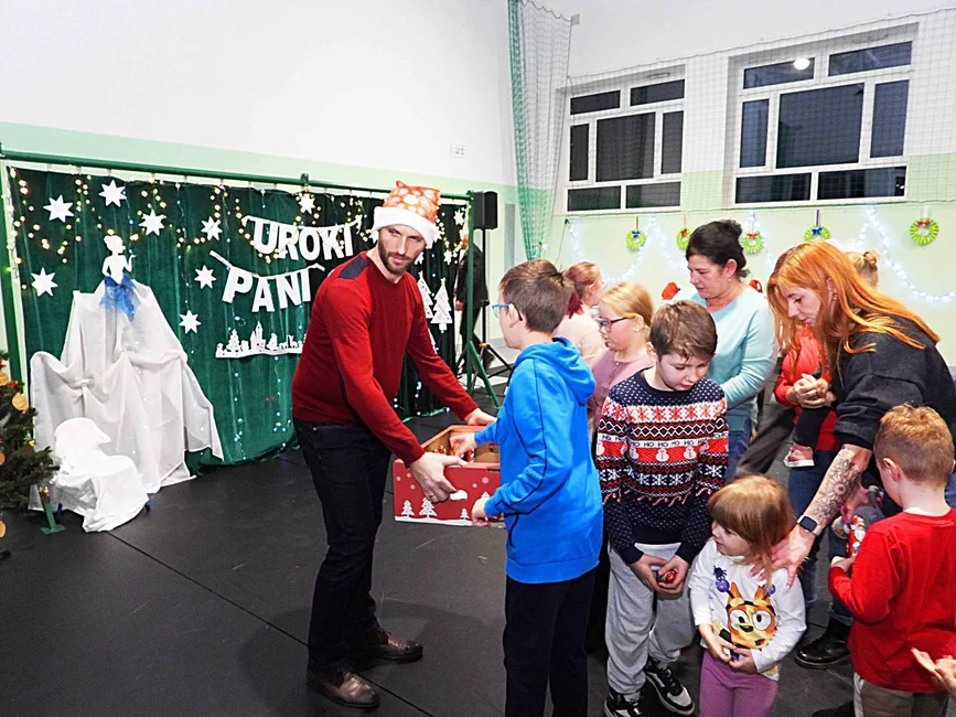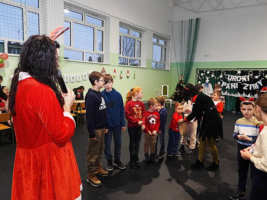Fotorelacja z mikołajek zorganizowanych przez sołtysa, radę rodziców i miejscową OSP w szkolnej hali sportowej.