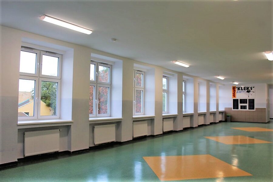 W Szkole Podstawowej nr 4 w Kościanie, poza termomodernizacją przeprowadzono zakrojone na szeroką skalę prace remontowe na wszystkich kondygnacjach.
