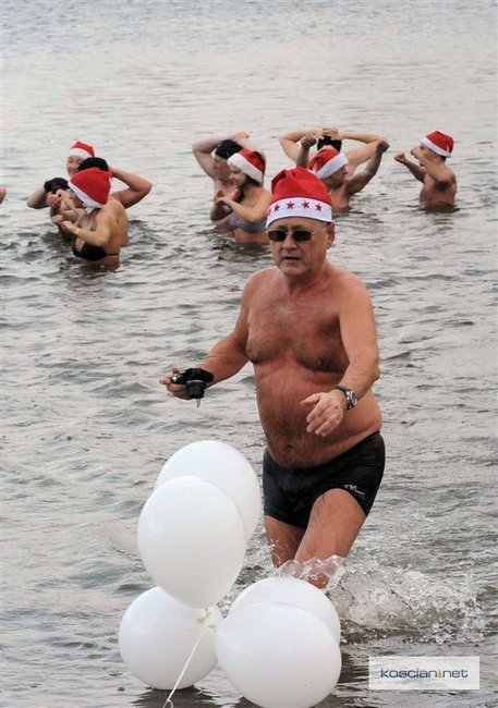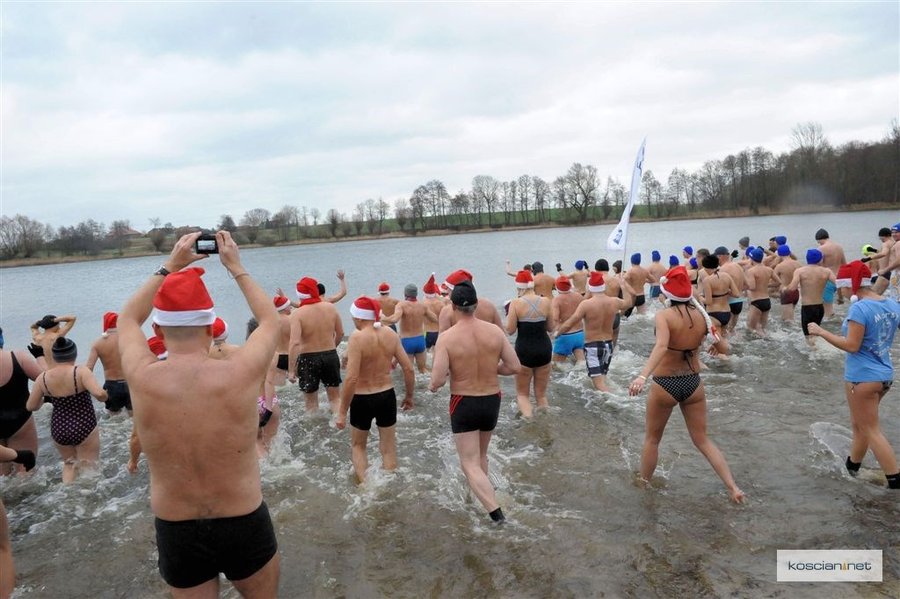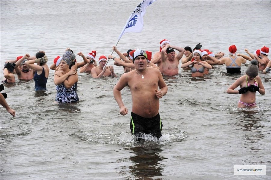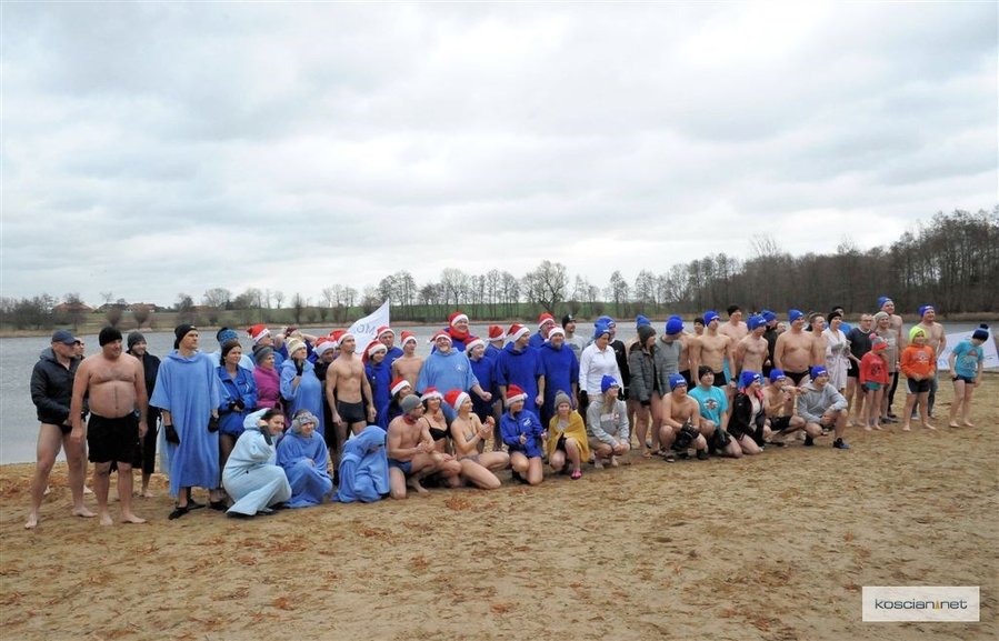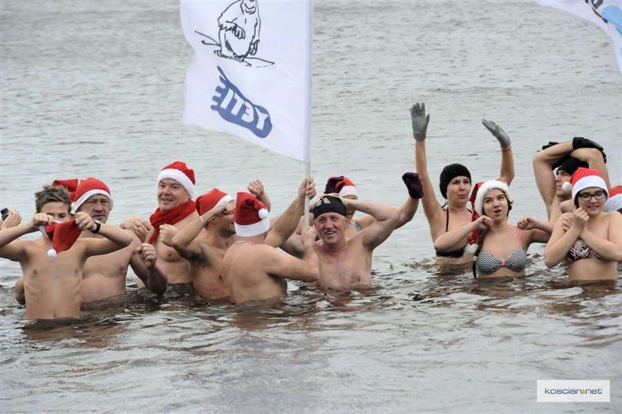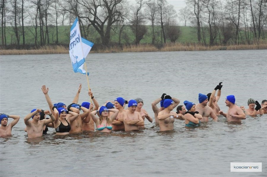 W Krzywiniu 76 śmiałków przystąpiło w niedzielę do bicia rekordu Guinnessa w morsowaniu.