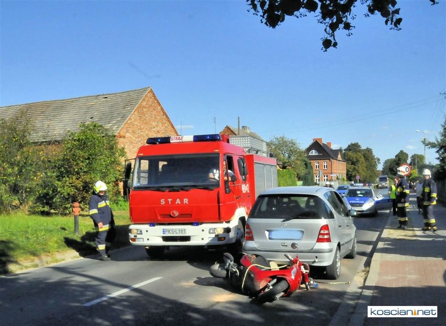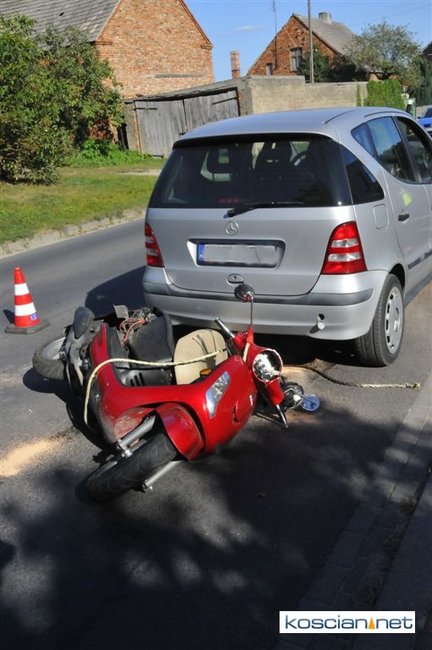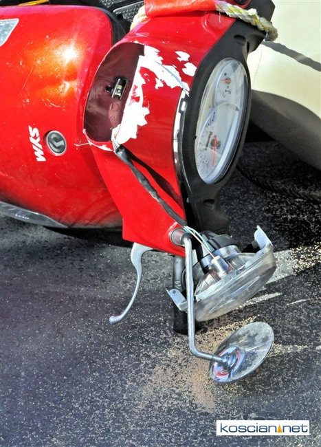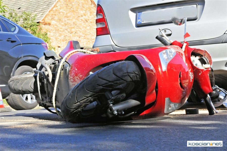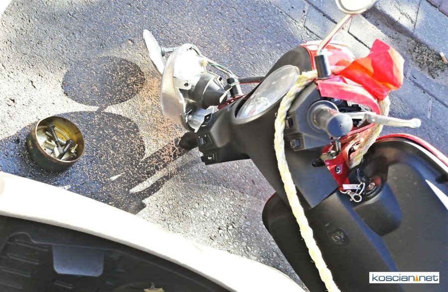Do zdarzenia doszło po godzinie 15. na ulicy Kościańskiej w Starym Luboszu. Kobieta jadąca na motorowerze holowanym przez auto straciła panowanie nad pojazdem i po koziołkowaniu uderzyła w tył samochodu. Z obrażeniami głowy przewieziona została do szpitala.
