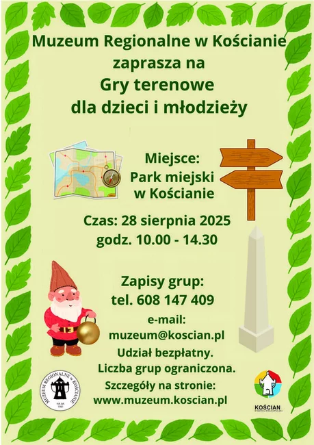 Muzeum Regionalne w Kościanie zaprasza dzieci i młodzież do udziału w zabawie terenowej w parku miejskim, którą zaplanowano na czwartek, 28 sierpnia.