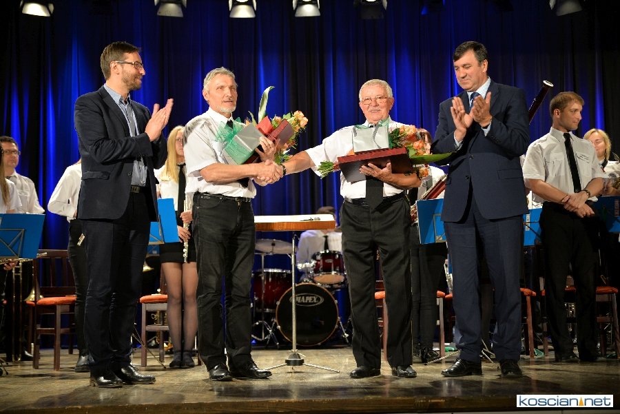 Burzliwymi oklaskami nagrodzono obchodzącego w tym roku jubileusz 50-lecia pracy artystycznej dyrygenta Macieja Madanowskiego i Mariana Kempińskiego, który po 27 latach prezesury zrezygnował z tej funkcji, ale nadal będzie wspierał orkiestrę jako instrumentalista. Podziękowania i gratulacje na ręce obu panów złożyli: Piotr Ruszkiewicz, przewodniczący Rady Miejskiej Kościana, wiceburmistrz Maciej Kasprzak i Janusz Dodot, dyrektor KOK. Były kwiaty, upominki i pamiątkowe listy gratulacyjne. Pokrojono też jubileuszowy tort.