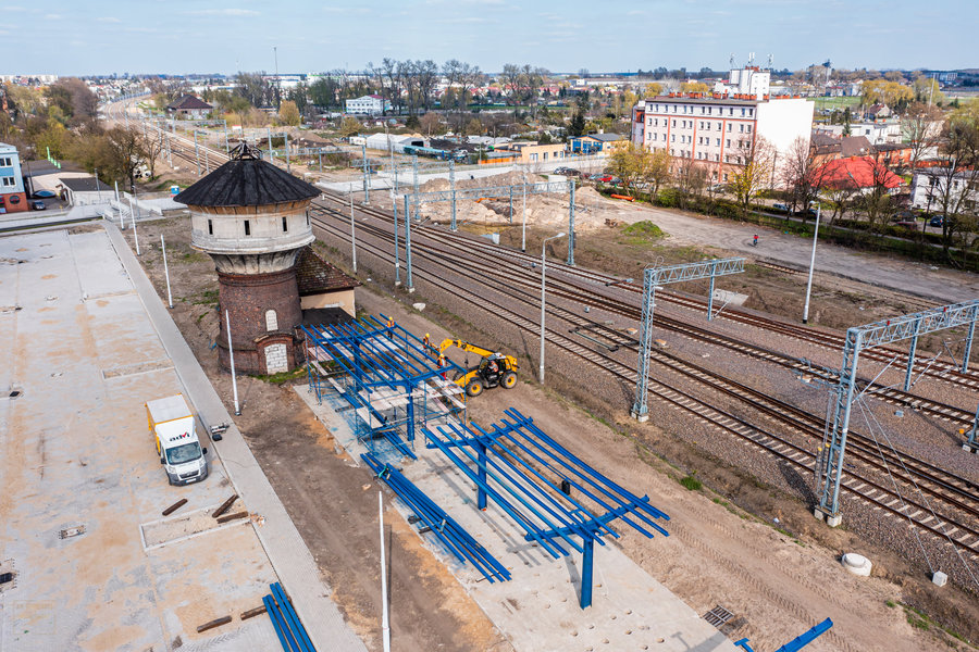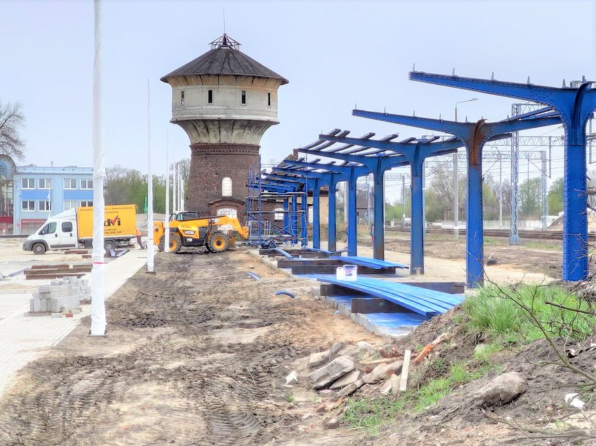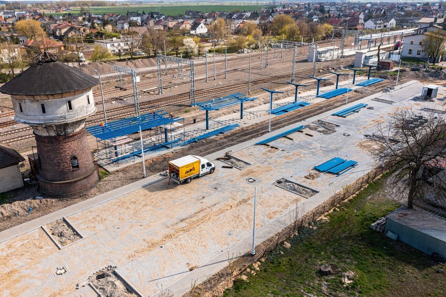 Budowany parking samochodowy ma pomieścić ponad sto samochodów, a rowerowy blisko trzysta jednośladów. Przed deszczem chronić je będzie zabytkowa wiata peronowa z 1906 roku, która przed remontem stała na peronie drugim. Aktualnie trwa montaż zadaszenia wiaty. Na parkingu zamontowano także słupy oświetleniowe.