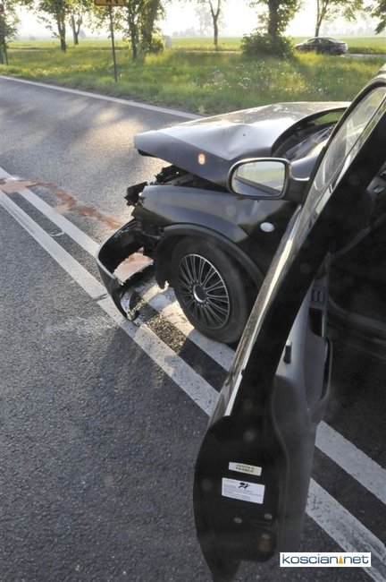 Około godziny 6.40 prowadzący opla astrę, 63-letni mieszkaniec powiatu kościańskiego, nie udzielił pierwszeństwa przejazdu i doprowadził do kolizji z samochodem renault kangoo kierowanym przez 59-letniego mieszkańca powiatu grodziskiego. Sprawcę ukarano mandatem. Do kolizji doszło na skrzyżowaniu w pobliżu nieczynnej stacji benzynowej.