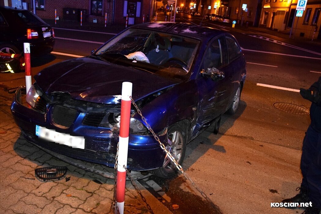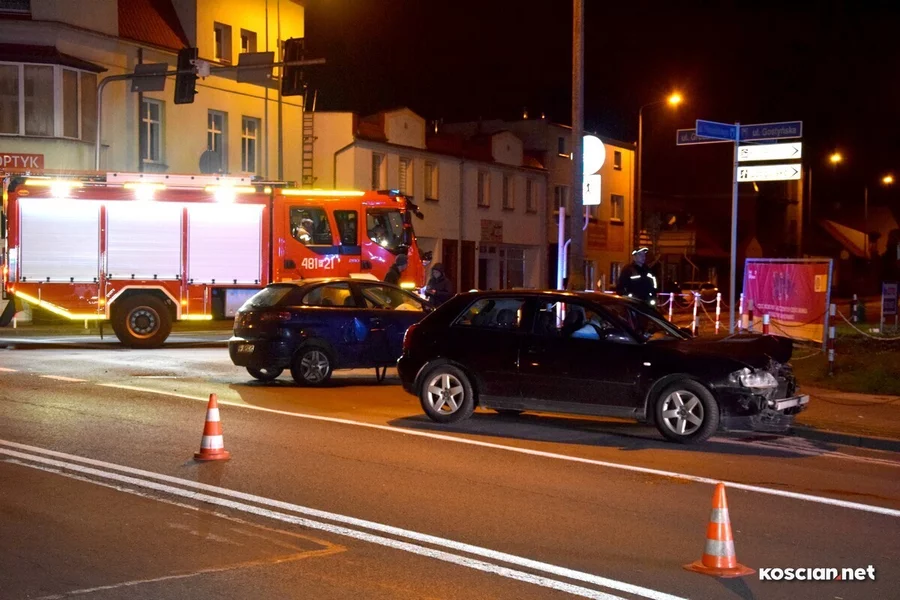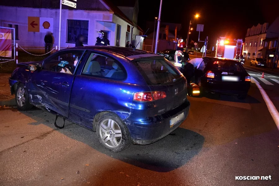 Do zdarzenia doszło w nocy z soboty na niedzielę (4/5listopada). Krótko po północy, jadący ulicą Piłsudskiego seat, uderzył w prawidłowo jadące audi, którym kierowała 47-letnia mieszkanka Kościana. Przybyły na miejsce zespół ratownictwa medycznego podjął decyzję o przewiezieniu poszkodowanej kościanianki na badania do szpitala. Kierująca seatem, 22-letnia mieszkanka gminy Stęszew, nie odniosła poważniejszych obrażeń.