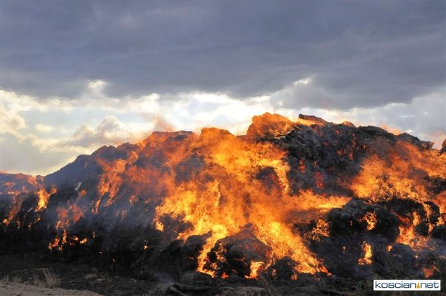 Około godziny piętnastej stanowisko kierowania Państwowej Straży Pożarnej w Kościanie przyjęło informację o pożarze stogu w okolicy Starej Przysieki Pierwszej (gmina Śmigiel). Na miejsce wysłano dziesięć zastępów. Z ogniem walczyli zawodowi strażacy z Kościana oraz ochotnicy ze Śmigla, Starego Bojanowa, Czacza, Gryżyny i Racotu. Podczas akcji zabezpieczenie powiatu przejęła OSP Kościan.