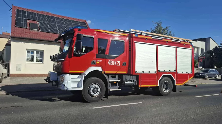 Na miejscu pracowali strażacy, którzy zabezpieczyli miejsce kolizji i usunęli z jezdni rozbite elementy pojazdów.