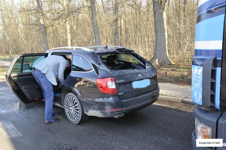 W Czaczu, na krajowej „piątce”, w tył skody uderzył ciągnik siodłowy scania.