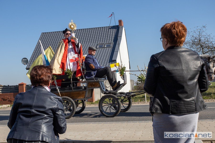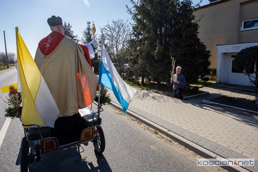 - Pandemia uniemożliwia nam przeżywanie Niedzieli Palmowej w świątyni, dlatego wyruszyłem do wszystkich wiosek białeckiej parafii z Najświętszym Sakramentem – mówi Ks. Jarosław Olejniczak. - Ten akt pobożności był wyrazem naszej jedności oraz wzajemnej łączności w trudnym czasie koniecznego pozostawania w domach.