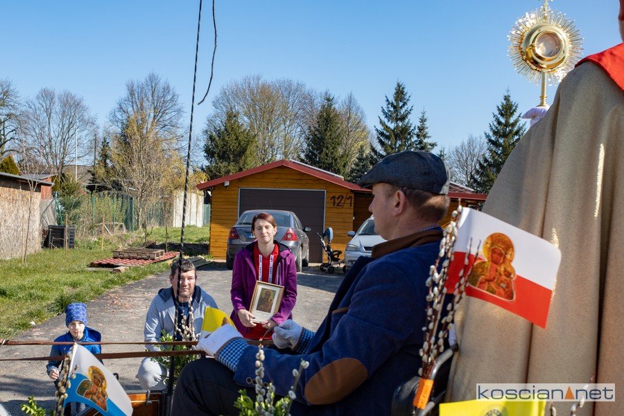 Parafianie chcący przyjąć błogosławieństwo oczekiwali na przejazd bryczki, którą podróżował proboszcz, w oknach swych mieszkań lub rodzinami wychodzili przed dom z palmami i obrazkami Matki Bożej Częstochowskiej.