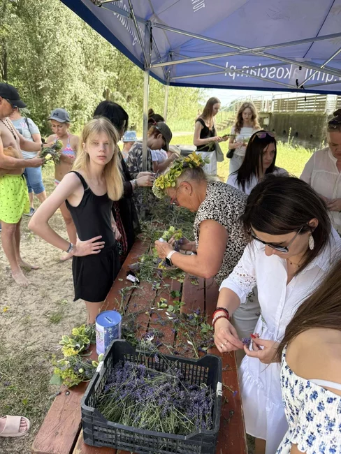 Uczestnicy wydarzenia mogli wziąć udział w warsztatach wyplatania wianków, które prowadziły panie ze Stowarzyszenia Centrum Rozwoju Gminy Kościan. W puszczaniu wianków na wodę pomogli ratownicy WOPR, a w świętojański nastrój wprawił plażowiczów zespół Semplicze.