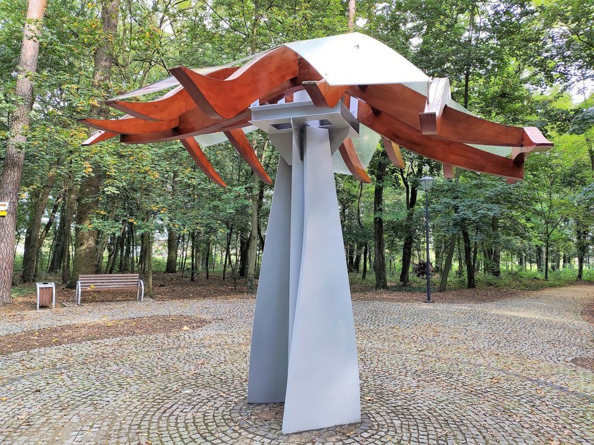 Odnotujmy, że w ostatnich dniach odnowiono stojący w parku grzybek.