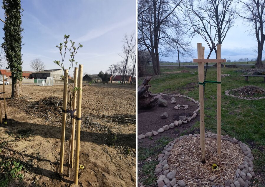 Drzewa zostały opalikowane oraz wyposażone w drenaż ułatwiający podlewanie. Następna partia drzew i krzewów zostanie zamówiona w okresie jesiennym.