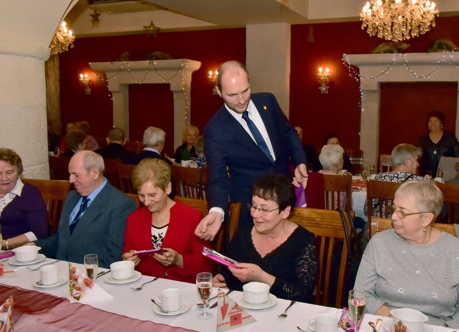 Gościem spotkania był burmistrz gminy Konrad Malicki, który obdarował wszystkich przybyłych słodkim upominkiem. Po wspólnym obiedzie i śpiewaniu kolęd rozmawiano o planach na rok 2018.