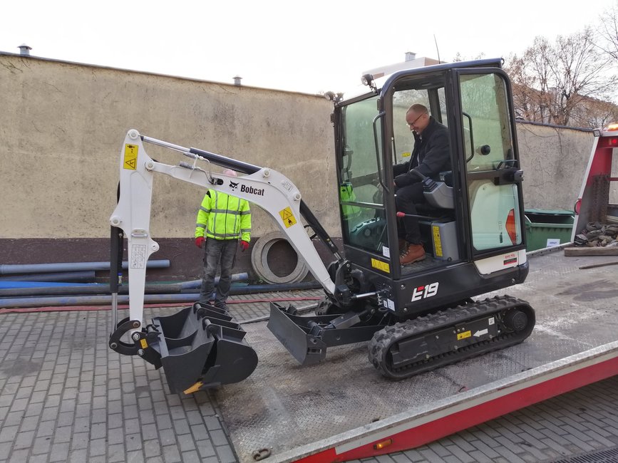 - Minikoparka jest na gąsienicach gumowych, których rozstaw można zmniejszyć do jednego metra szerokości zewnętrznej. Gumowe gąsienice pozwolą na wjechanie w teren zielony bez większych szkód – mówi Dawid Borkowski, prezes Wodociągów Kościańskich Spółka z o. o. - Dodatkowy osprzęt w postaci młota wyburzeniowego pozwoli na przyspieszenie i ułatwienie prac w przypadku potrzeby rozkucia podłoża betonowego czy asfaltowego.