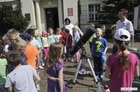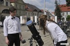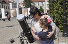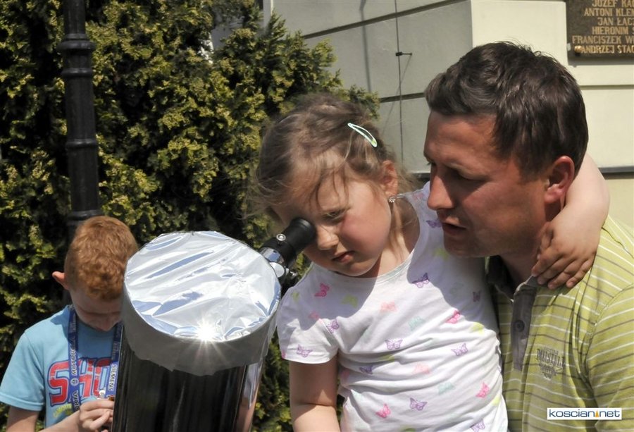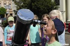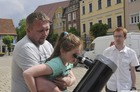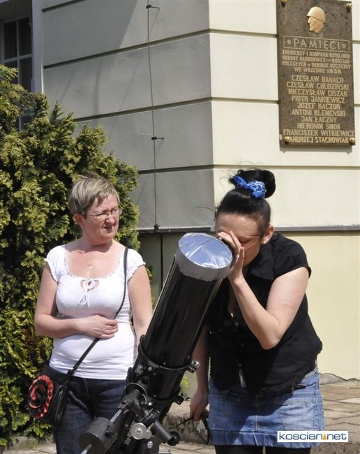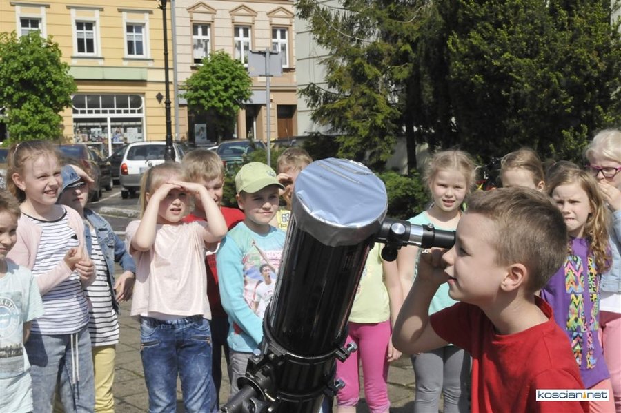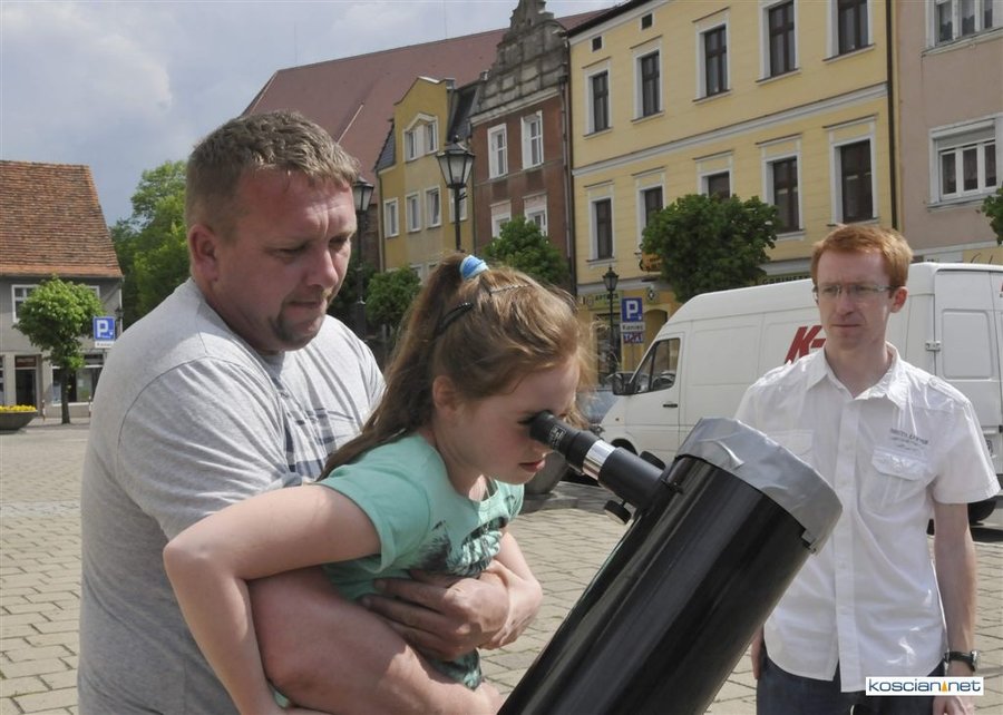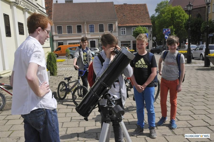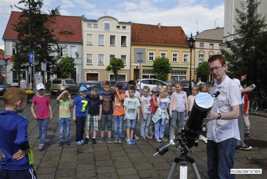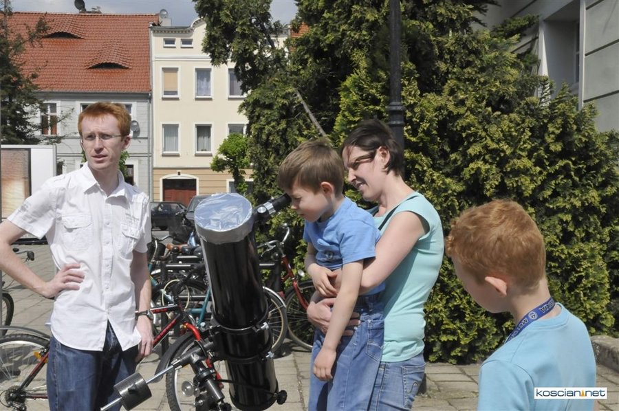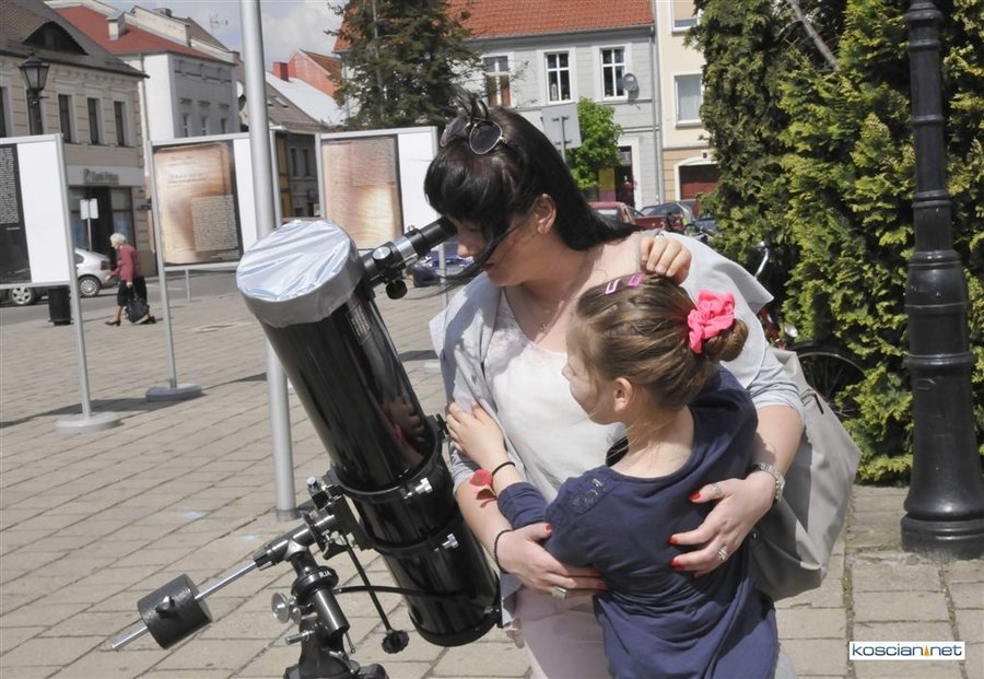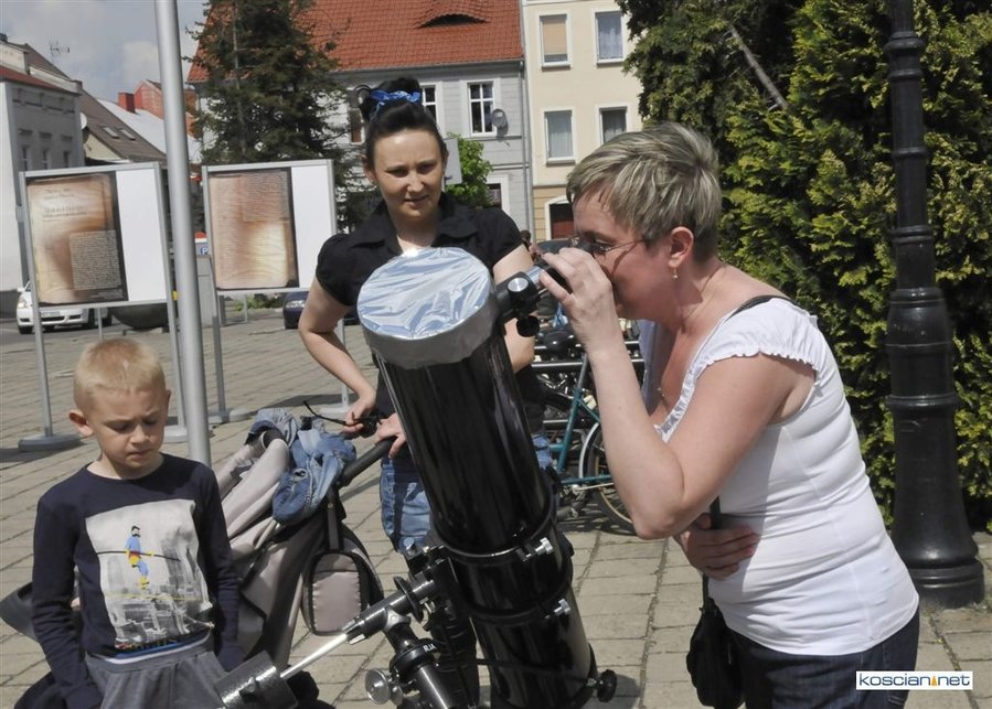 Przez ustawiony na kościańskim Rynku teleskop można było obserwować przejście Merkurego przez tarczę Słońca.