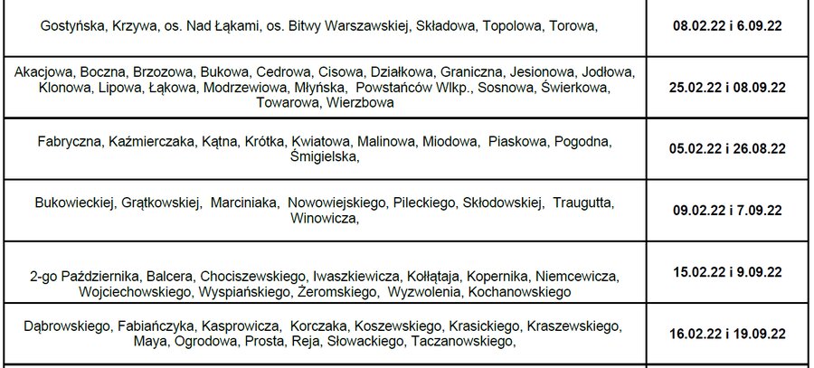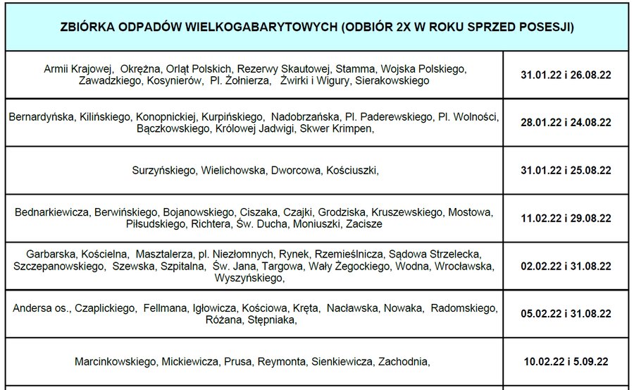 We wskazanych dniach można wystawić przed posesje następujące odpady: