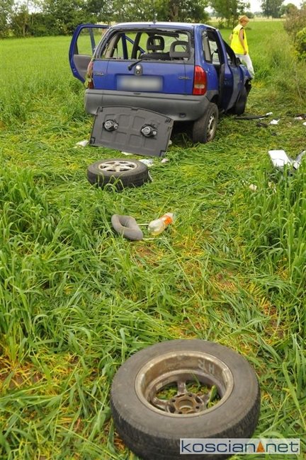Do wypadku doszło 2 czerwca około godziny 15.00 na drodze pomiędzy Brońskiem a Kotuszem. Opel corsa prowadzony przez obywatela Ukrainy z niewyjaśnionej przyczyny wypadł z drogi i koziołkował. Do szpitala w Kościanie przewieziono ranną pasażerkę i kierowcę. Okoliczności i przebieg zdarzenia ustala policja.