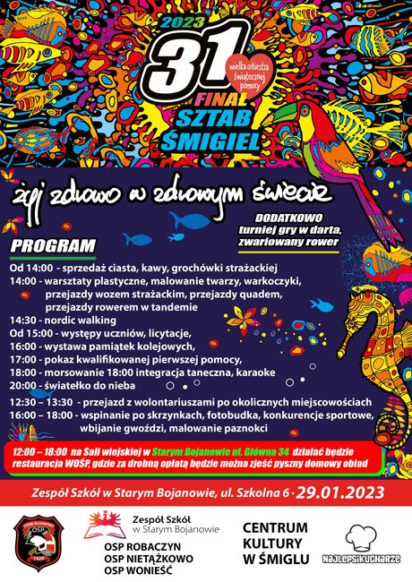 12:00-18:00 na Sali wiejskiej w Starym Bojanowie ul. Główna 34 działać będzie restauracja WOŚP, gdzie za drobną opłatą będzie można zjeść pyszny domowy obiad