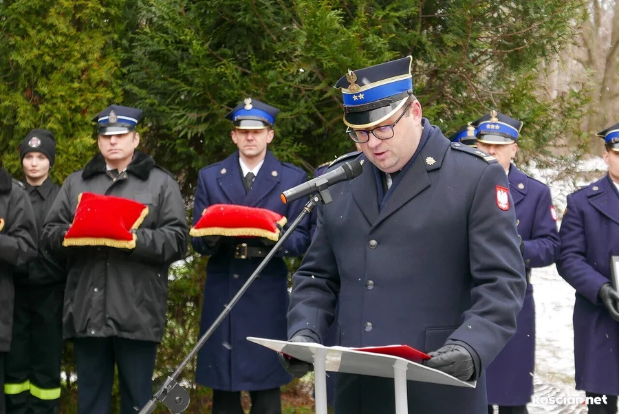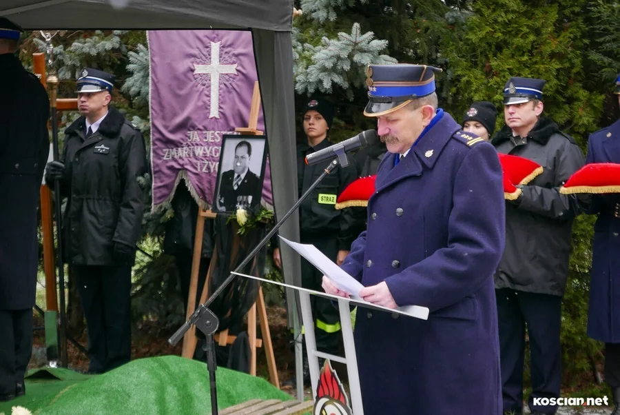 Hołd zmarłemu oddały liczne poczty sztandarowe państwowej i ochotniczych straży pożarnych. Okolicznościowe mowy wygłosili: Robert Natunewicz, zastępca Komendanta Wojewódzkiego PSP i były Komendant Powiatowy w Kościanie, Piotr Ruszkiewicz, burmistrz Kościana i Jarosław Tomaszewski, emerytowany Komendant Powiatowy PSP w Kościanie.