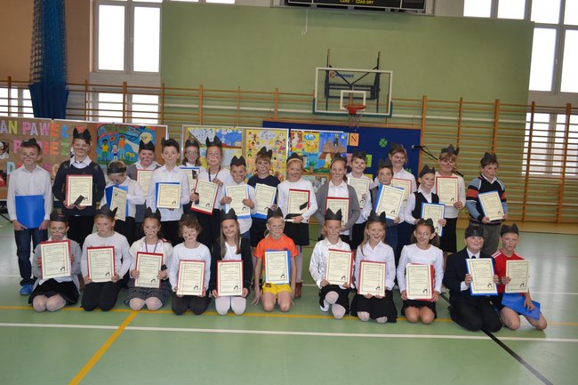 Czwartoklasiści, przebrani symbolicznie za koty, musieli wykazać się wiedzą, sprawnością fizyczną i wieloma innymi umiejętnościami, biorąc udział m.in. w konkursie picia mleka ze spodków, karmieniu kolegi kisielem, rysowaniu kota lewą ręką i z zasłoniętymi oczami, biegu z przeszkodami. Wszystkie zadania czwartoklasiści wykonali bezbłędnie i w nagrodę zostali przyjęci w poczet starszych uczniów szkoły. Każdy musiał złożyć ślubowanie, obiecując dobrze uczyć i wypełniać obowiązki szkolne, po czym dyrektor Żaneta Igłowicz-Nieć poobcinała im papierowe ogonki.