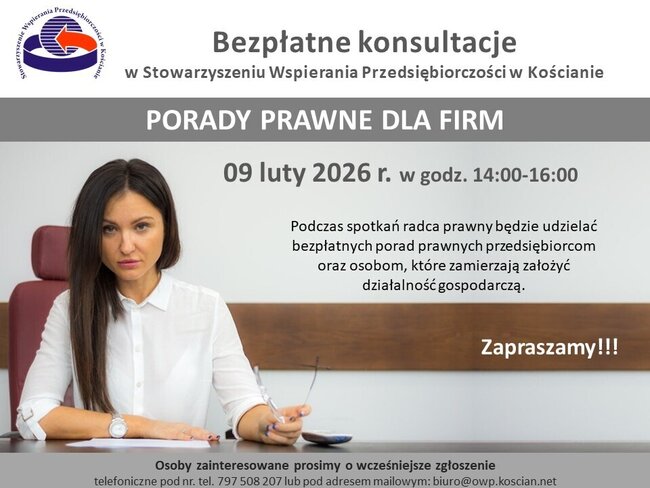 Porady są bezpłatne. Liczba zgłoszeń ograniczona! Więcej informacji na stronie www.owp.koscian.net.