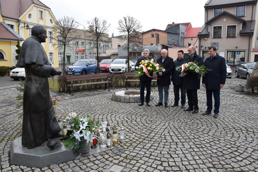 Pamięć zmarłego przed trzynastu laty papieża uczcili: wicestarosta Stefan Stachowiak, burmistrz Michał Jurga, przewodniczący kościańskiej rady Piotr Ruszkiewicz,wójt gminy Kościan Andrzej i jego zastępca Mirosław Duda.