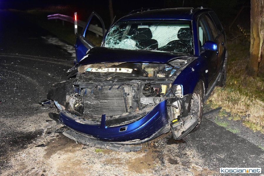 Do zdarzenia doszło w niedzielę, 2 września, około godziny 22:15. Kierujący volkswagenem, 67-letni mieszkaniec gminy Czempiń, włączając się do ruchu nie ustąpił pierwszeństwa przejazdu prawidło jadącej scani z naczepą, prowadzonej przez 27-letniego mieszkańca gminy Czempiń. Siła uderzenia była tak duża, że bariera energochłonna stojąca na poboczu drogi została wkręcona pod naczepę. Badanie trzeźwości wykazało 1,76 promila alkoholu w organizmie sprawcy kolizji.