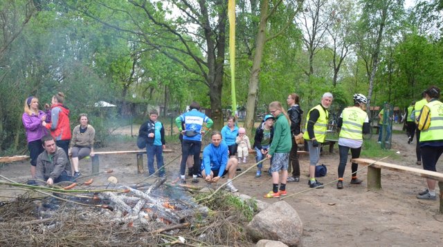Na wszystkich, którzy pokonali pierwszą z „Romantycznych Tras Rowerowych Ziemi czekała na mecie grochówka i ognisko, na którym można było upiec kiełbaski.