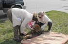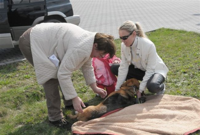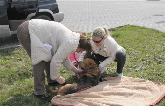 Szukamy właścicieli suczki, która błąkała się przy parkingu Bricomarche. Wyglądała na potrąconą przez samochód. Nie boi się ludzi i w kontakcie z nimi wyraźnie się ożywia. Pies jest bardzo wychudzony, ale sierść ma zadbaną. Nie boi się jeździć samochodem. Na szyi miała obrożę.