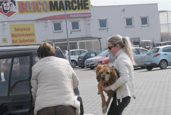 Na parkingu marketu przy ul. Śmigielskiej w Kościanie odnaleziono suczkę wyglądającą na rasę ogar polski.
