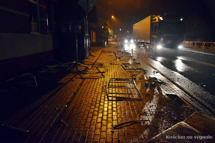 Do zdarzenia doszło w niedzielę, 2 grudnia, około godziny 22.15., w Głuchowie. Kierujący ciągnikiem siodłowym iveco z naczepą, 54-letni mieszkaniec powiatu poznańskiego, stracił panowanie nad prowadzonym zestawem, zjechał z drogi na chodnik, uszkadzając barierki ochronne. Zestaw zatrzymał się po przejechaniu kilkudziesięciu metrów chodnikiem, przy tarasie lokalu "U Jana".