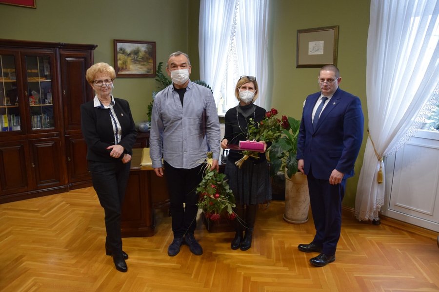 Iwona Bereszyńska, Przewodnicząca Rady Powiatu Kościańskiego i Zbigniew Franek, Wicestarosta Kościański zaprosili na spotkanie Jadwigę Gidel, byłą dyrektor Miejskiej Biblioteki Publicznej w Kościanie, która pełni rolę biblioteki powiatowej i Janusza Dodota, byłego dyrektora Kościańskiego Ośrodka Kultury w Kościanie, by podziękować im za wieloletnią współpracę z samorządem Powiatu Kościańskiego i prace dla mieszkańców powiatu.