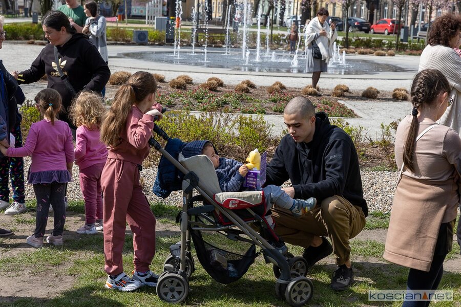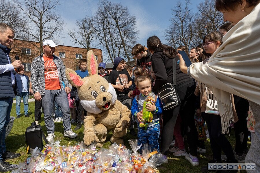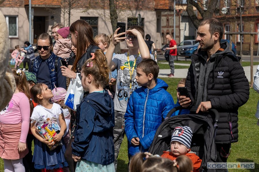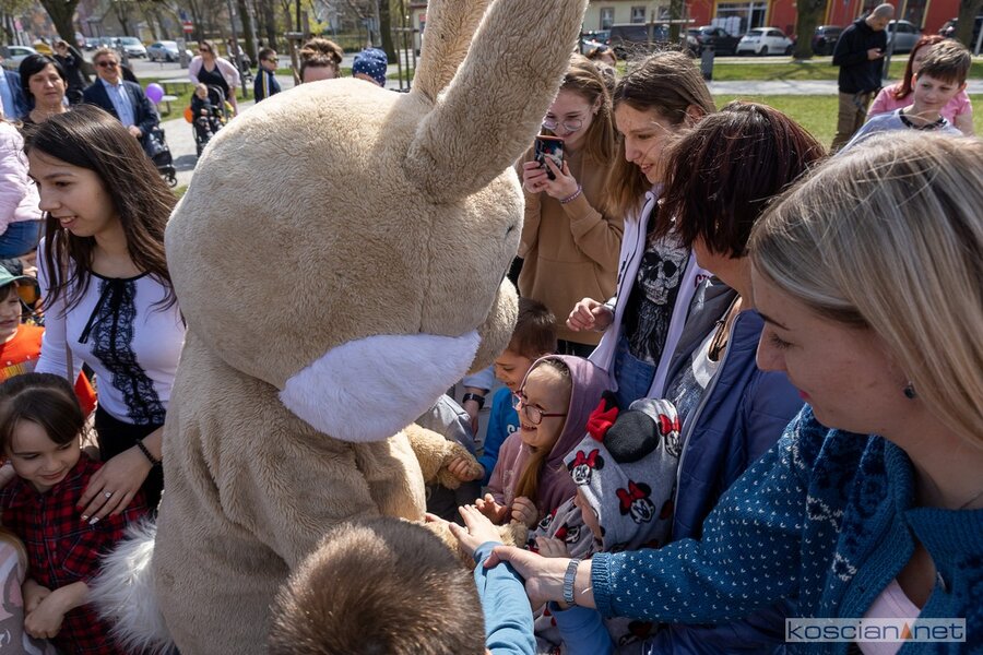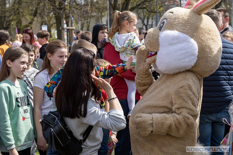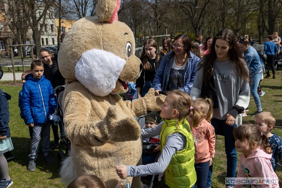 W południe rozpoczął się finał akcji „Kościański Zajączek” zorganizowanej przez radnych Kościana z Klubu „Koalicja Obywatelska”. Podczas świątecznego spotkania ukraińskie dzieci dowiedziały się o wielkopolskich zwyczajach wielkanocnych i wspólnie z polskimi dziećmi wyruszyły na poszukiwanie zajączka. Przy dźwiękach muzyki dzieci i rodzice przeszli sprzed biblioteki na Plac Wolności, gdzie Zając rozdawał dzieciom słodkie upominki.