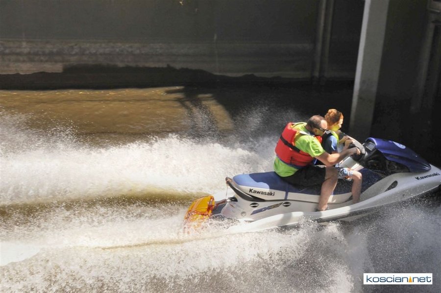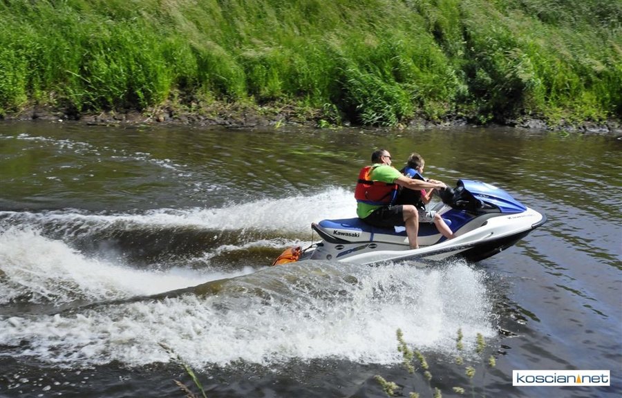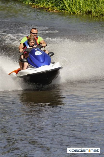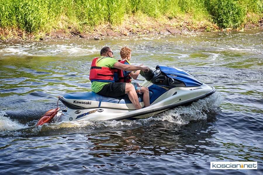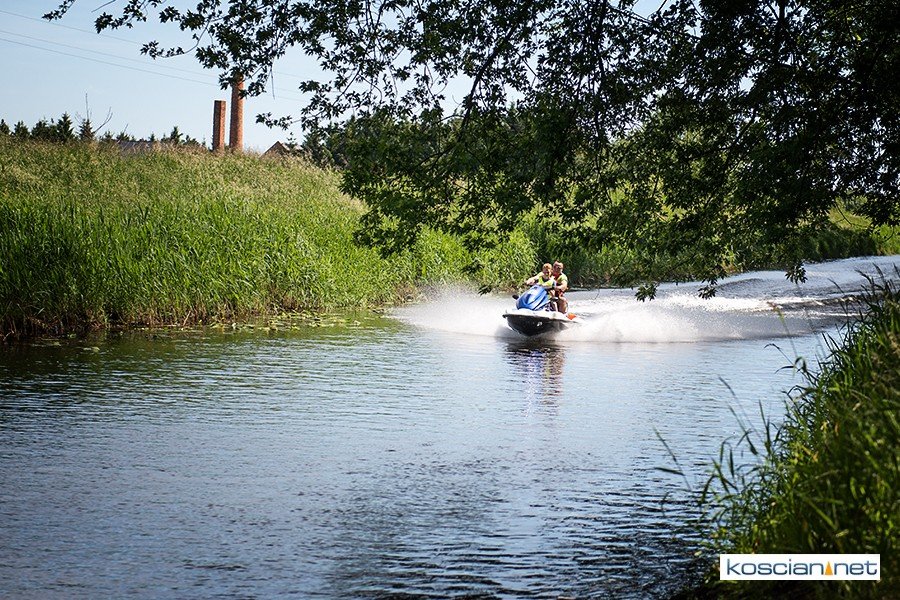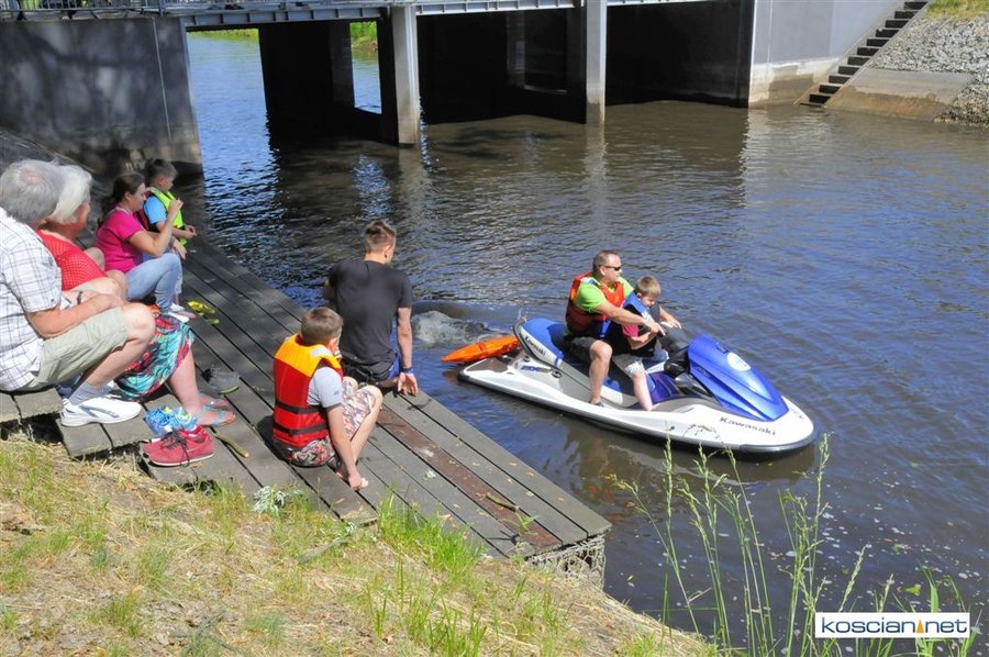 W ramach Dni Kościana, od godziny 10.00, można było bezpłatnie korzystać z przejażdżek skuterem wodnym po Kościańskim Kanale Obry. Chętnych zabierano z przystani kajakowej w parku miejskim przy jazie. Do południa z atrakcji, którą miasto zamówiło u właściciela skutera, bezpiecznie skorzystało wiele osób.