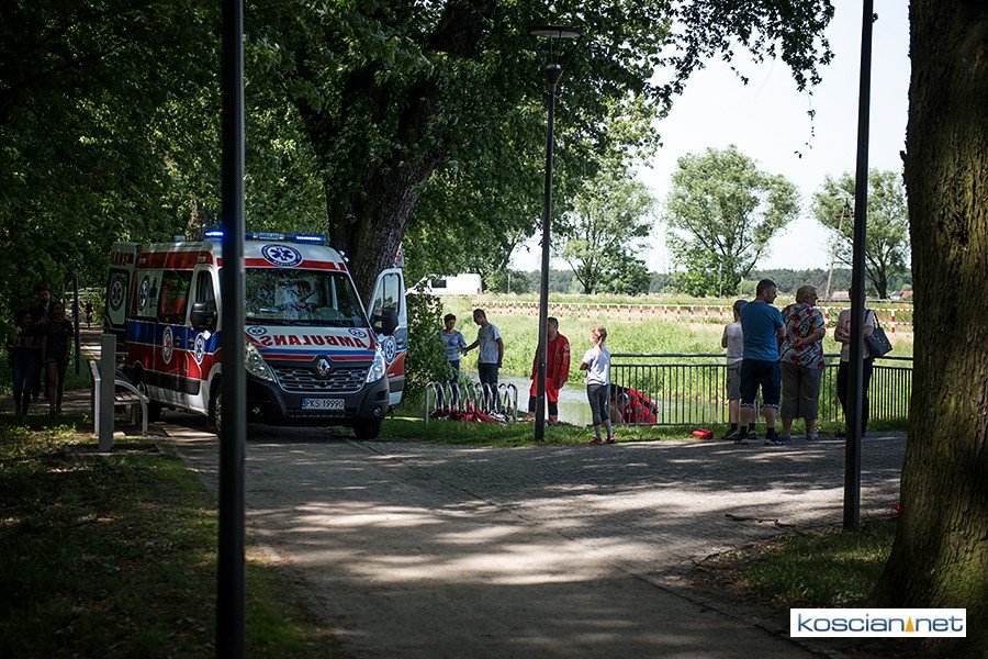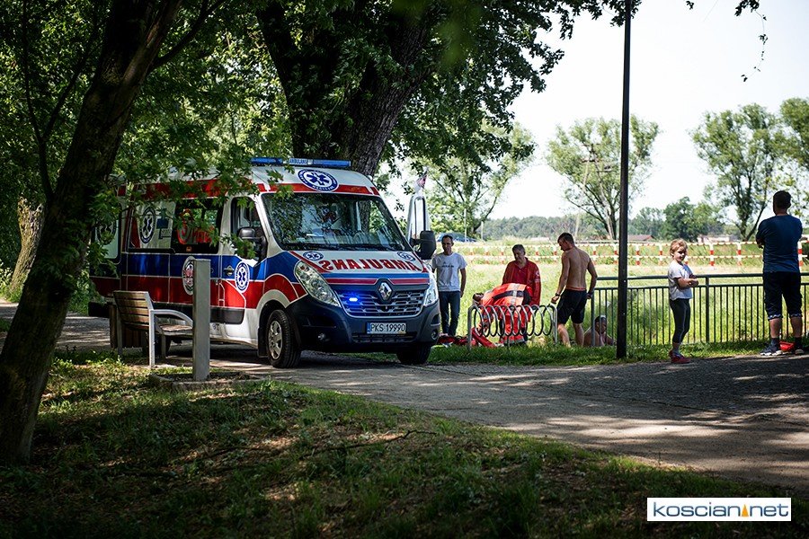 O godzinie 13.45 doszło do poważnego wypadku. Poruszający się ze znaczną prędkością skuter, będący własnością i prowadzony przez doświadczonego ratownika Wodnego Ochotniczego Pogotowia Ratunkowego, uderzył w filar jazu. Kierujący i przewożony skuterem 11-letni chłopiec wpadli do wody. Z szybką pomocą poszkodowanym pospieszyły osoby przebywające w okolicach jazu.