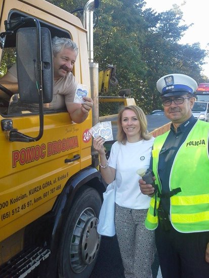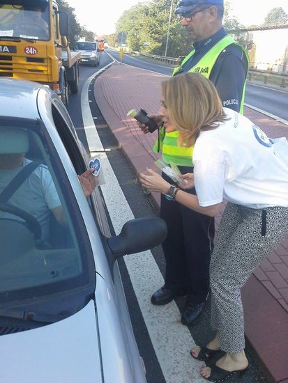 Podczas rutynowej kontroli kierowcy zatrzymanych samochodów mieli możliwość porozmawiania z wolontariuszem PZU oraz otrzymywali niebieskie serce, które ma przypominać o bezpieczeństwie na drodze.