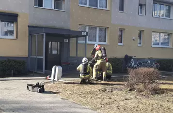 Z mieszkania, w którym wybuchł pożar, przed przyjazdem służb wyszły dwie osoby. Strażacy natychmiast przejęli nad nimi opiekę, a równolegle rozpoczęli akcję gaśniczą.