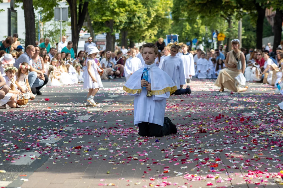 Kościańska procesja Bożego Ciała wyruszyła sprzed figury Serca Jezusowego na Skwerze Jana Pawła II i zakończyła się w kościele farnym.