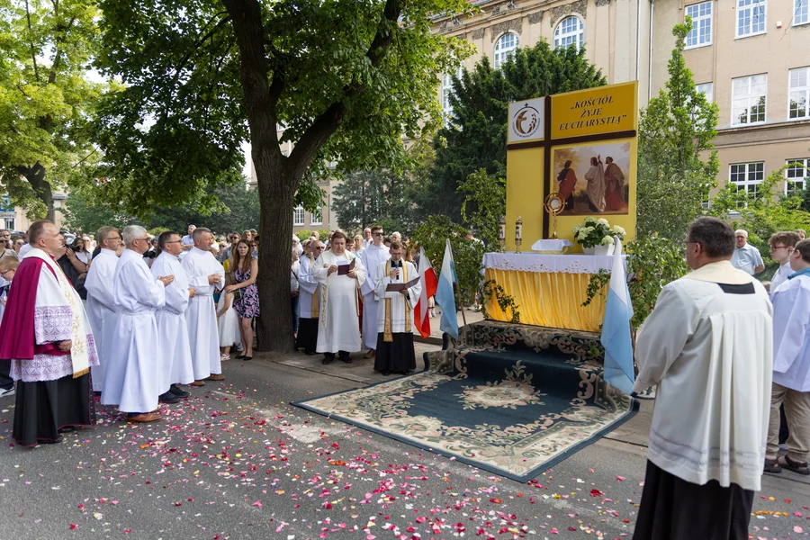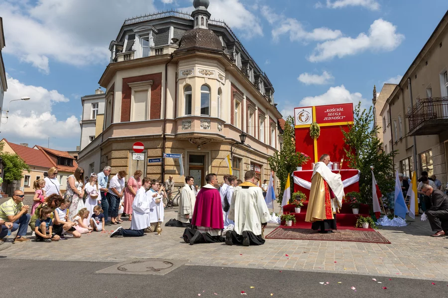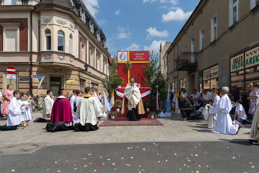 Procesja przeszła Aleją Kościuszki, ul. Wyszyńskiego i Kościelną. Trzy pierwsze ołtarze, przy których zatrzymali się wierni, aby wysłuchać fragmentów Ewangelii ustawiono na Alejach Kościuszki, czwarty na ulicy Wrocławskiej.