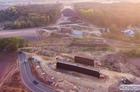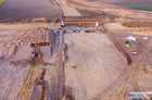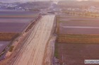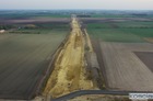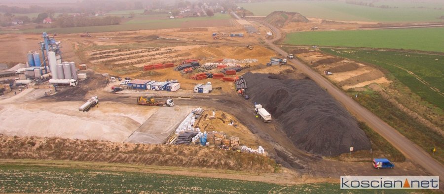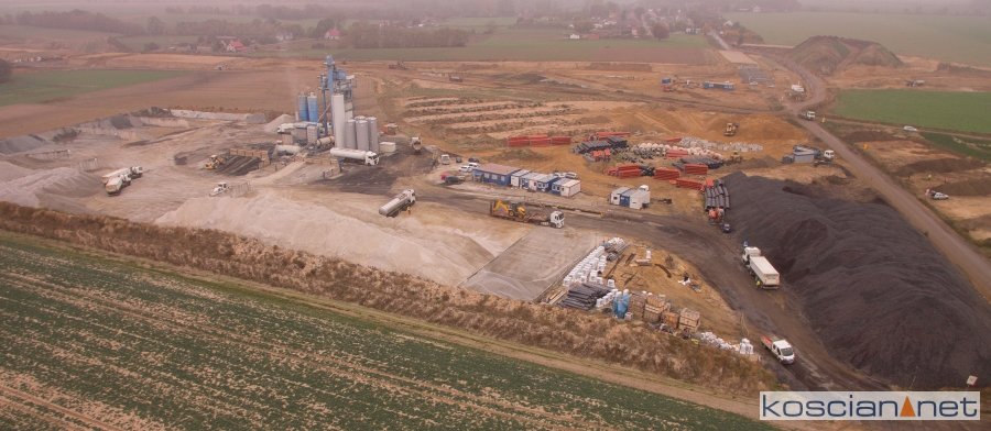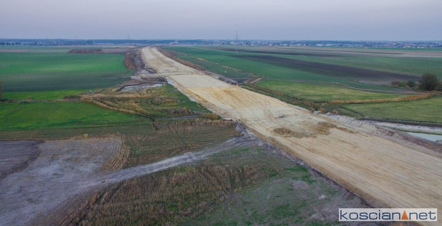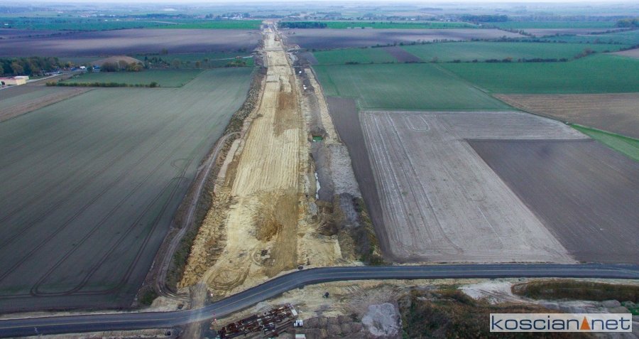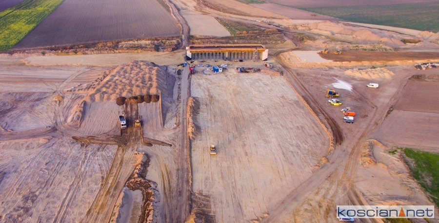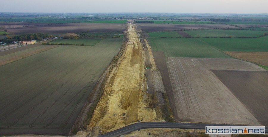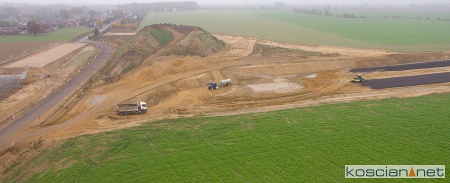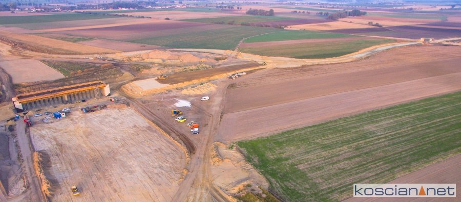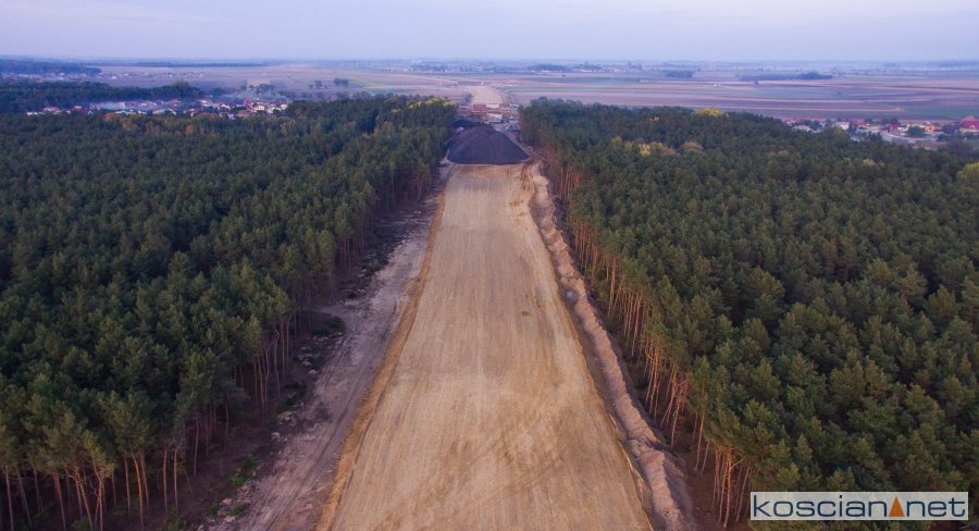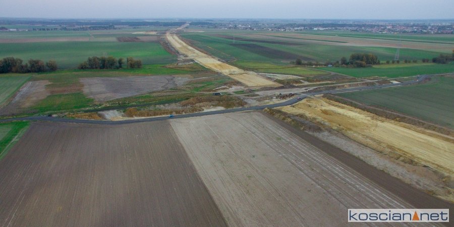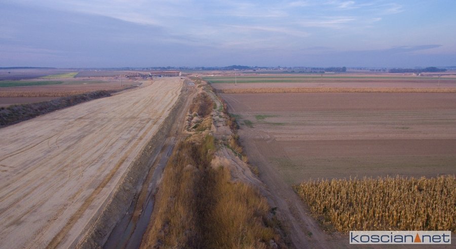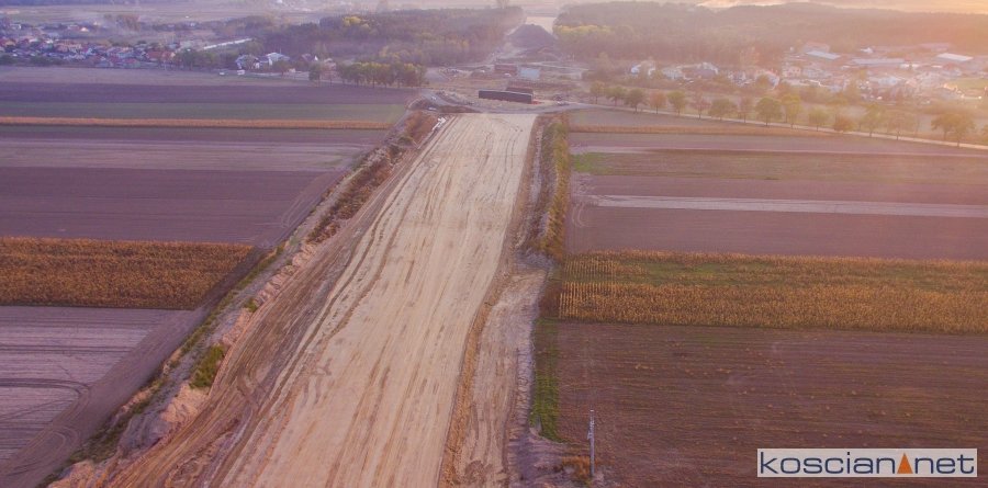 Przelatujemy nad placem budowy drogi ekspresowej nr 5 w powiecie kościańskim.