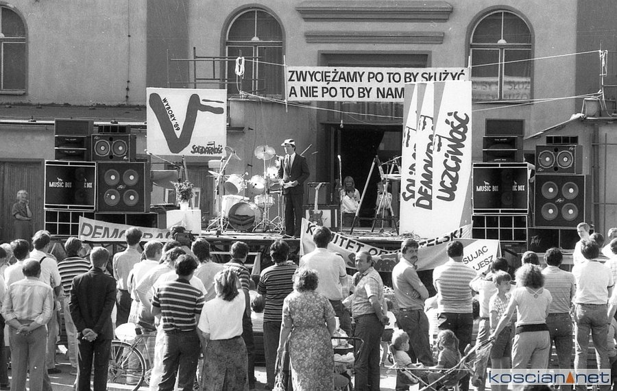 Przypomnijmy, że kampanią wyborczą KO Solidarność kierował w Kościanie sztab pod przewodnictwem Ryszarda Wawrzyniaka. Zorganizował on spotkania z kandydatami na posłów i senatorów w Jerce, Bieżyniu i Widziszewie. Spotkania w Śmiglu i Kościanie poprzedziły przemarsze przez miasto z orkiestrą dętą.